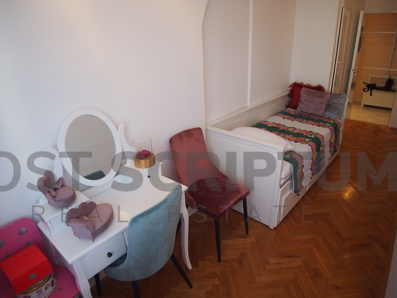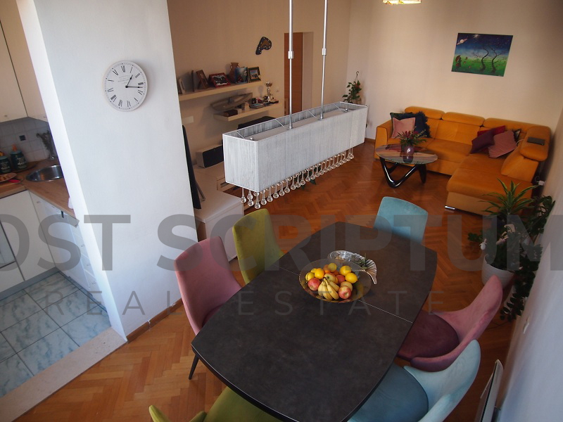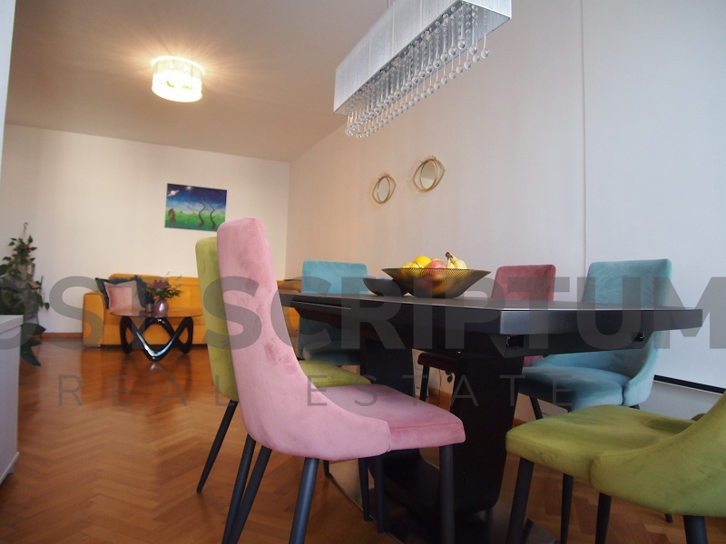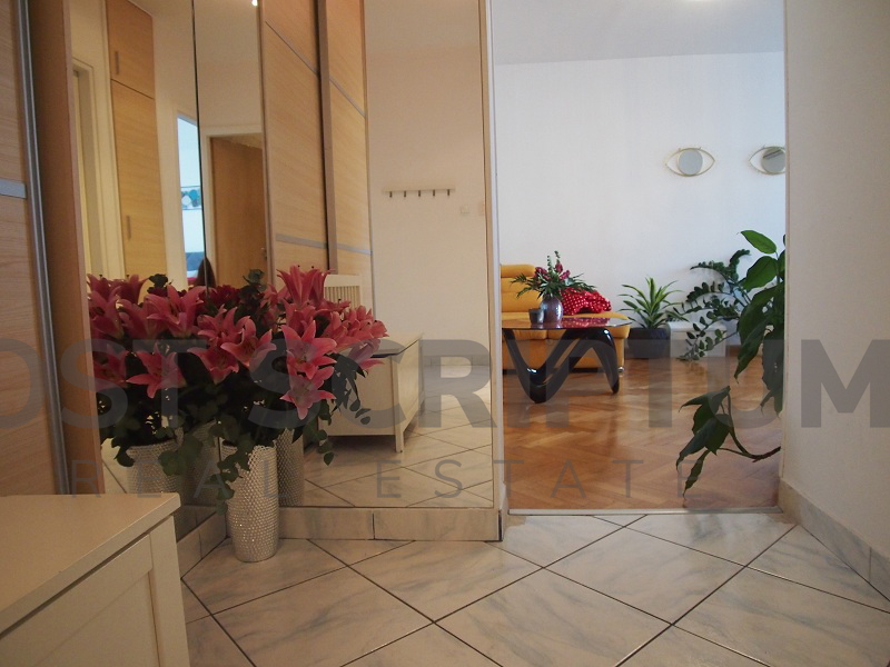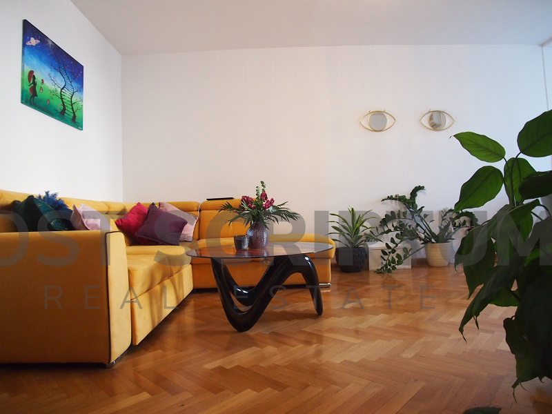 Iznajmljuje se prostran i ugodan dvosoban stan od 68 m2 položen na prvom katu stambene zgrade s liftom, sjeverne orijentacije.