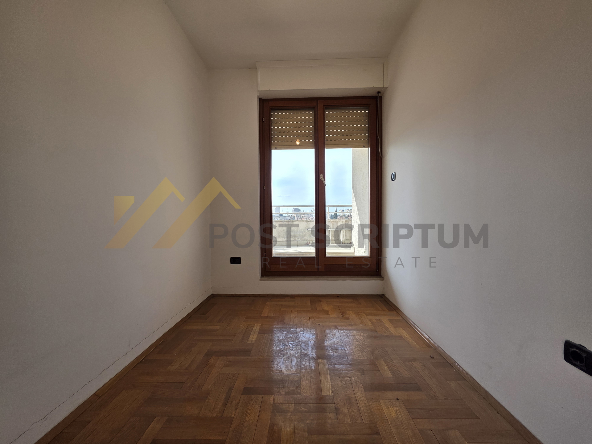 Iznajmljuje se manji nenamješteni stan kao poslovni prostor ukupne površine od 39,40 m2 položen na četvrtom katu poslovno-stambene zgrade, orijentacije istok - zapad.