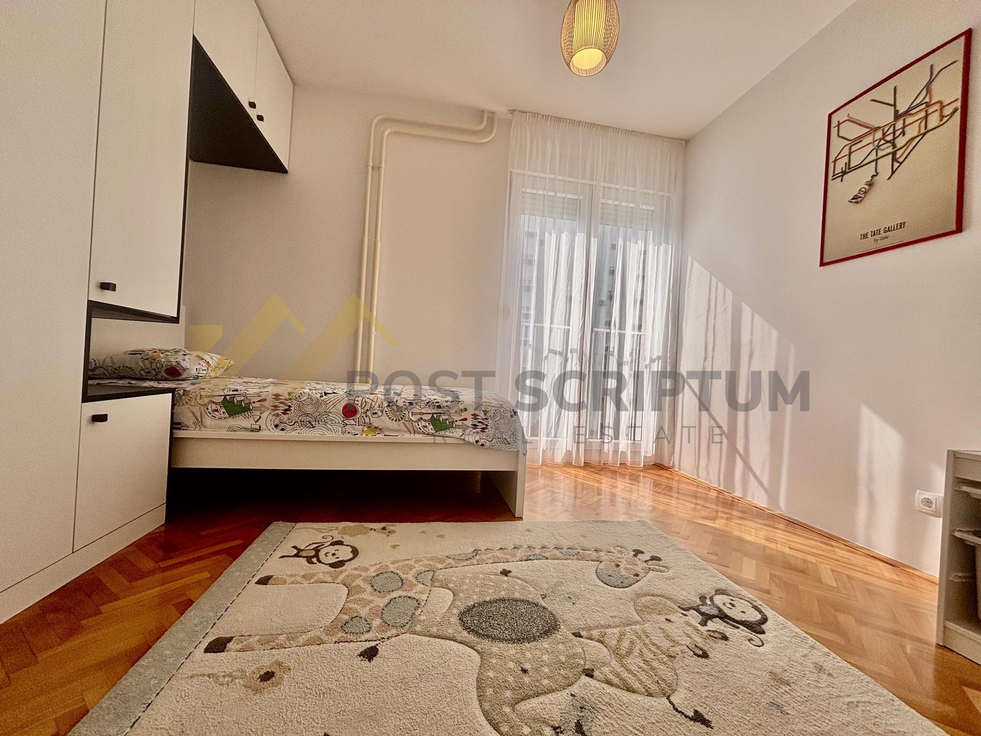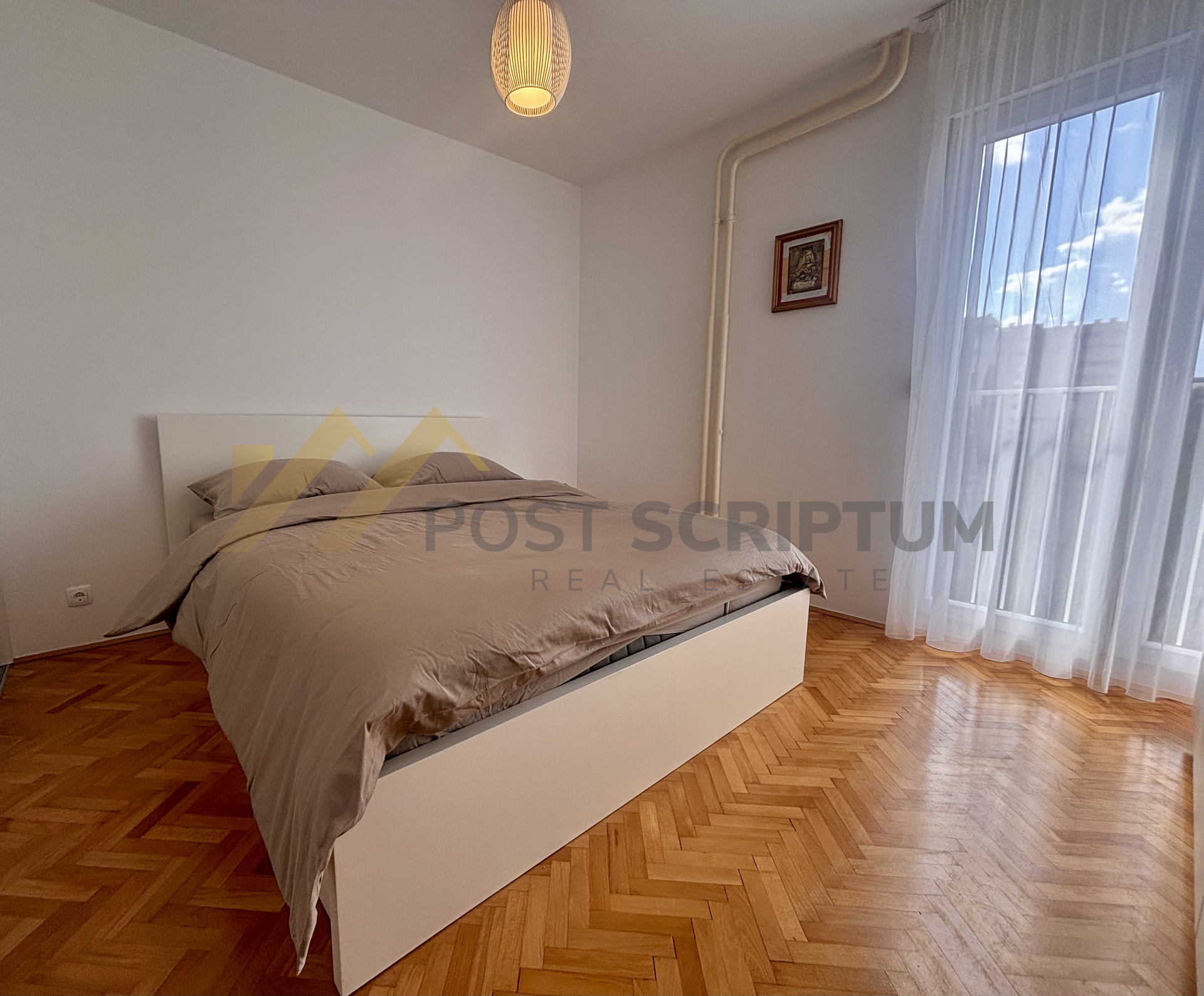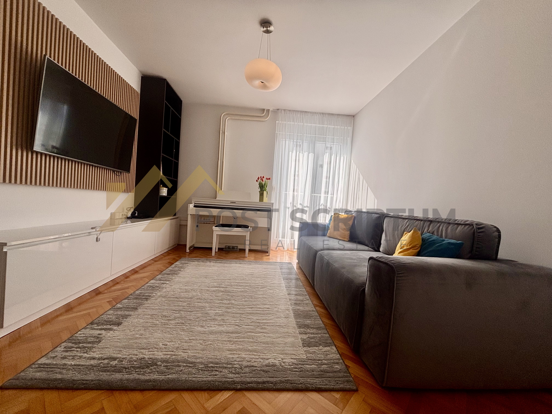 Iznajmljujemo predivan dvosoban stan od 65m2 položen na četvrtom katu stambene zgrade, orijentacije zapad-sjever.